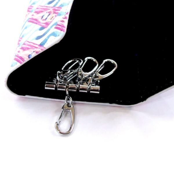 内側は左側にポケット、キー背面にスリット付きです。