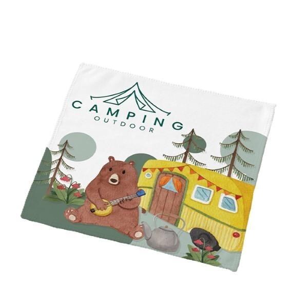 表面はポリエステルシャーリングでデザインを鮮やかに再現、裏面はコットンパイルで優れた吸水性を保持した高品質タオルです。