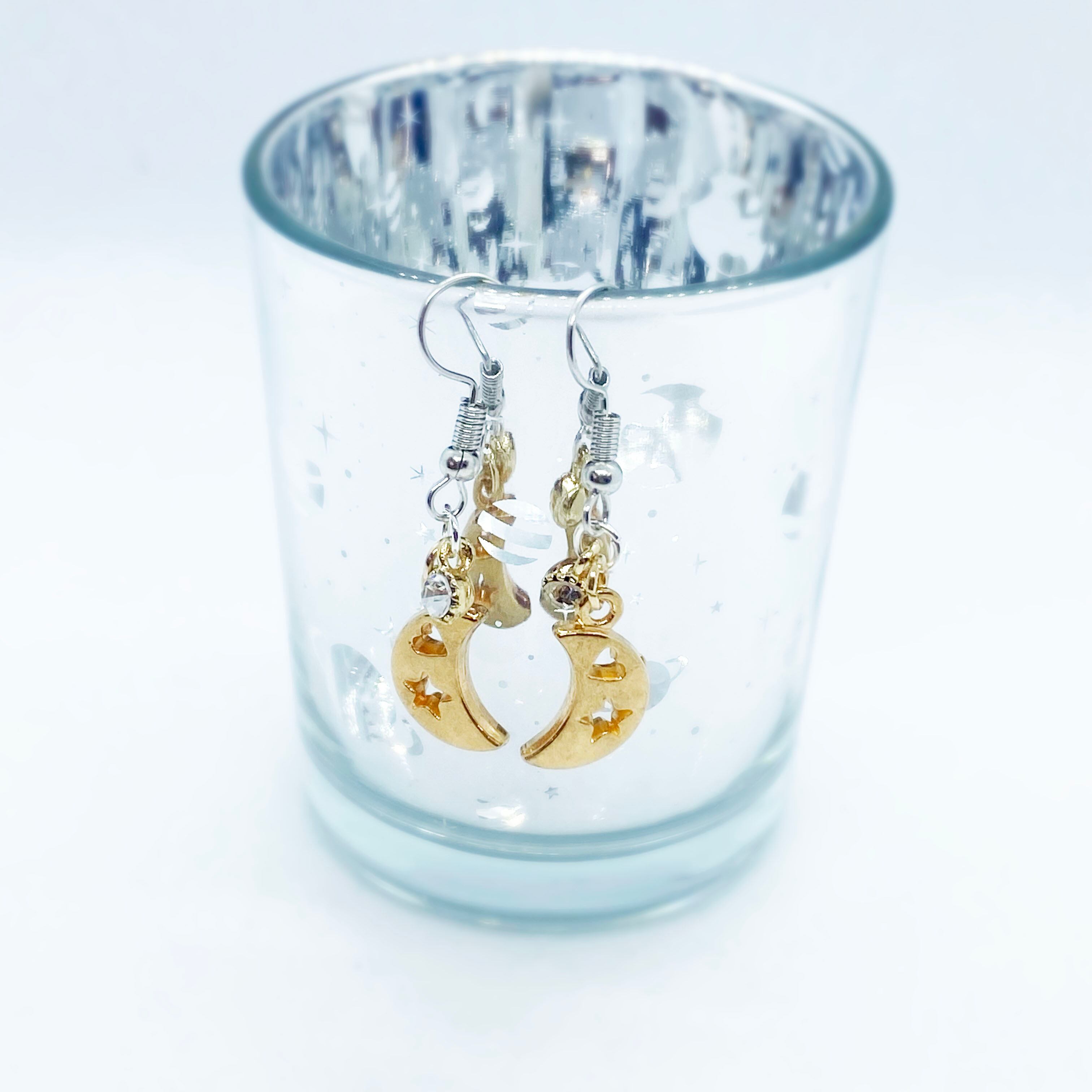 ピアス フックピアス 三日月チャーム ストーン オリジナル 1点物