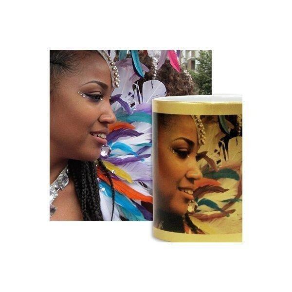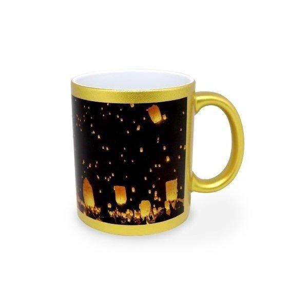 白色を使わない印刷方法なので、マグカップの金色が透けた仕上がりになります。