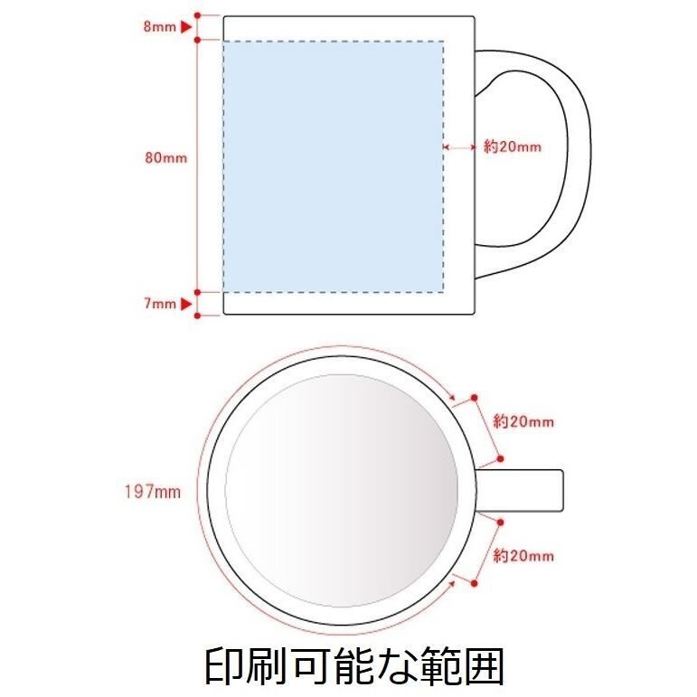 ※昇華転写は白インクがないためデザインデーターの白部分はマグカップ本体の色になります。
