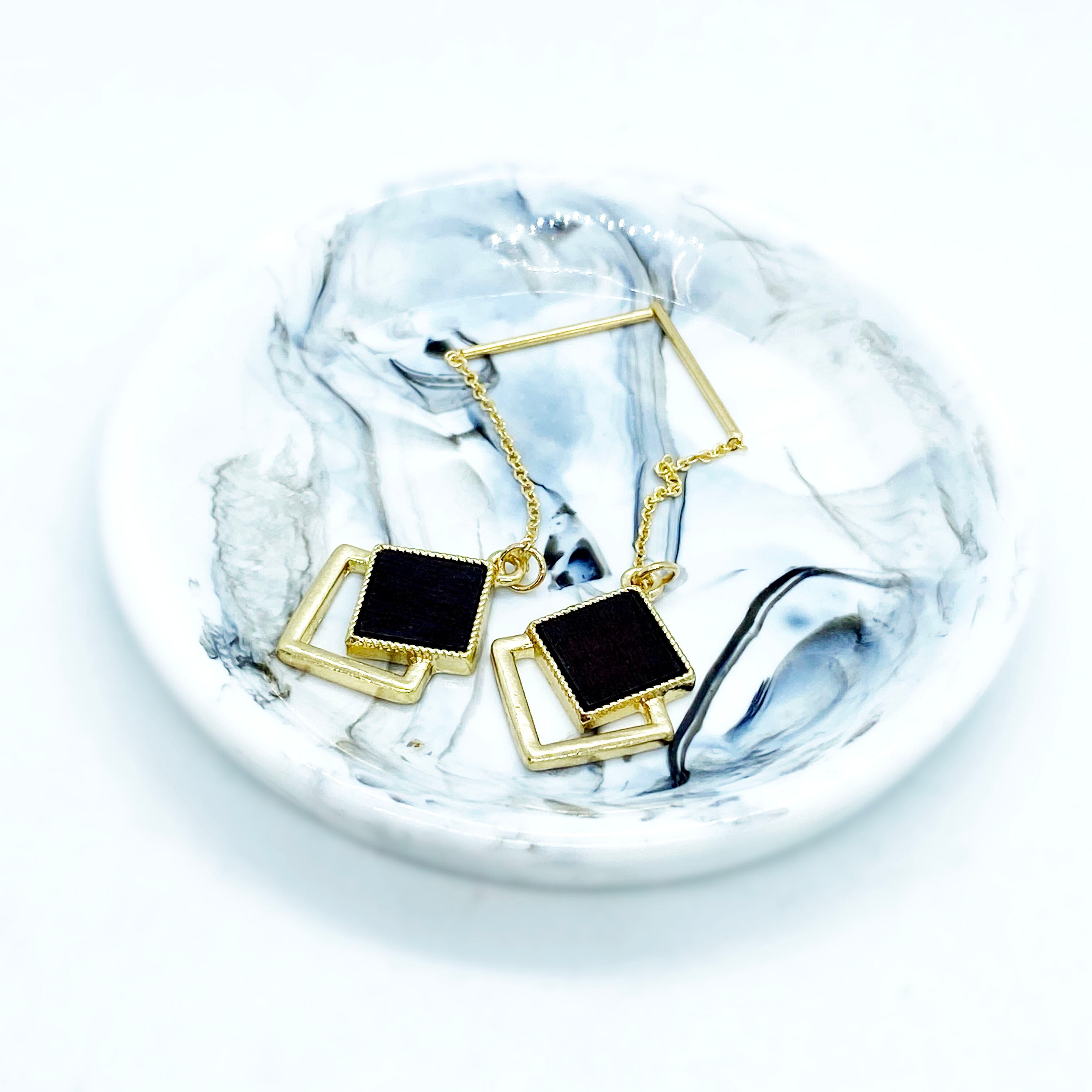 ウッド貼付ナチュラル 幾何チャーム 黒茶色