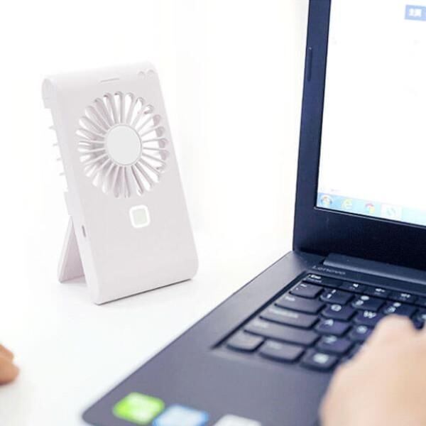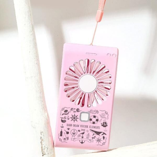 女性に喜ばれるミラー付きのモバイルファン。スライド式でミラーが出てきます。